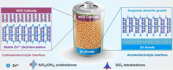 图1 KL-Zn固态电解质对锌金属负极和NH4V4O10正极的作用机制示意图