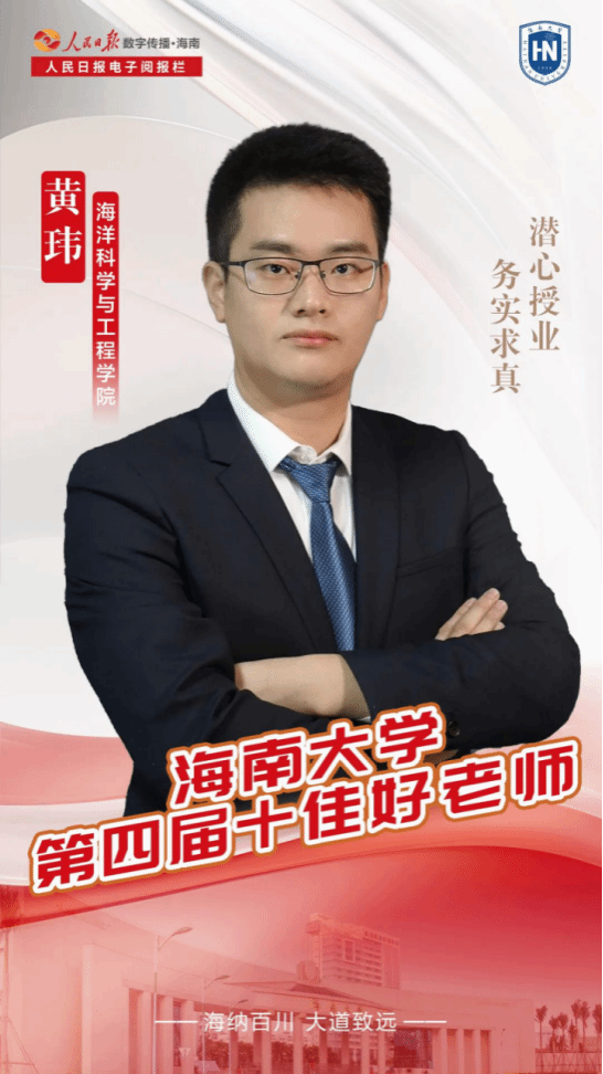 黄玮,1990年7月生,中共党员,海洋科学与工程学院副院长,硕士/博士生导师,入选海南省拔尖人才、海南省南海新星人才、中国海水淡化与水再利用学会青年委员,担任jdb电子游戏官方网站海水淡化与综合利用创新团队负责人和党支部书记。发表高水平学术论文40余篇,担任Journal of Bionic Engineering青年编委,《粉末冶金材料科学与工程》青年编委;获邀国际/国内学术会议报告5次,担任中国材料大会分会主席1次。担任PNAS,Advanced Materials,Nano Energy,Small等期刊审稿人。作为一名中共党员,黄玮老师不仅在学术上取得了优秀的研究成就,更以其坚定的政治信念和踏实淳朴的思想品质,成为青年师生的良师益友。