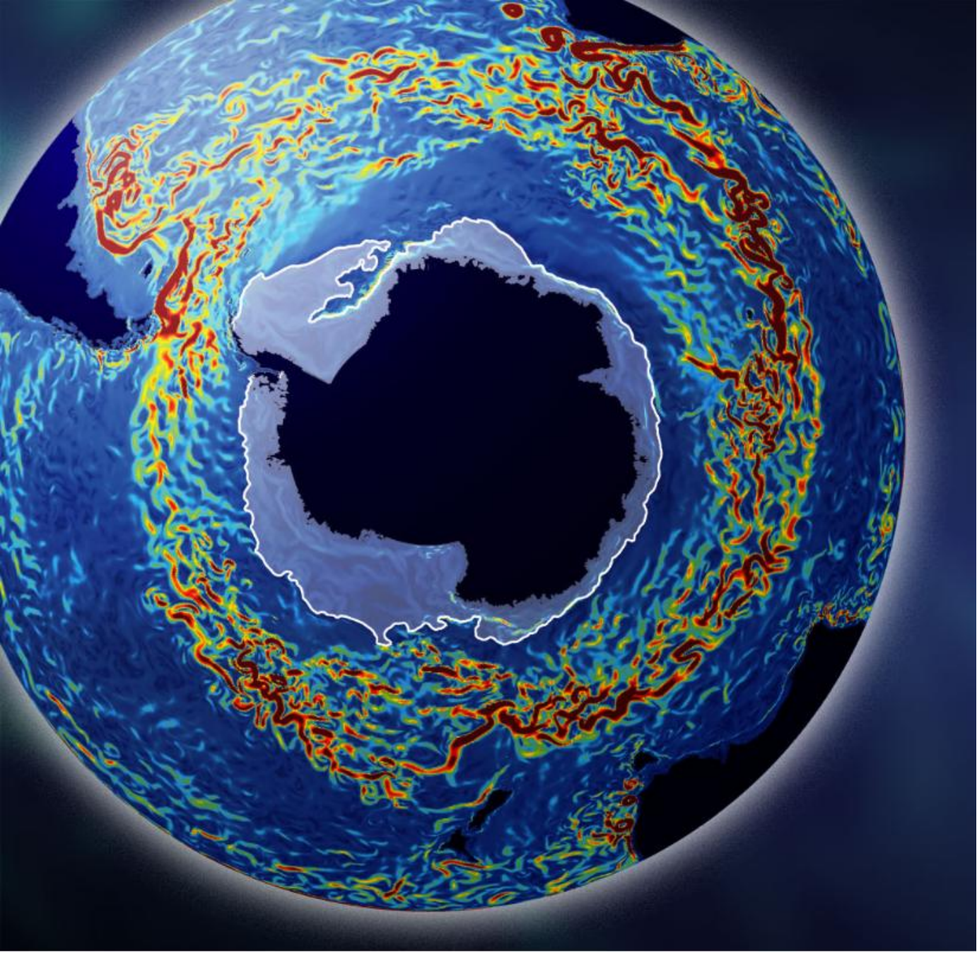 Antarctic circumpolar Circulation and associated fronts.(Credit: Image courtesy M. Mazloff, MIT; Source: San Diego Supercomputer Center, UC San Diego)